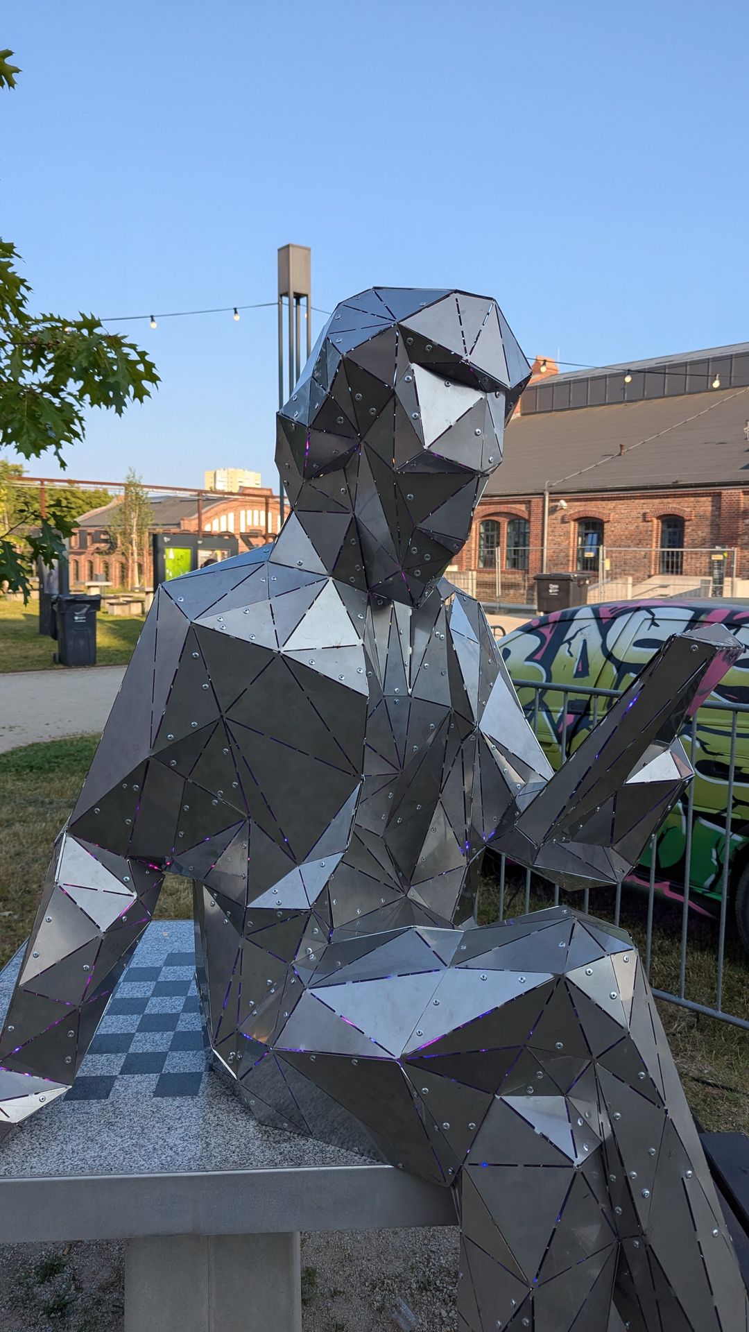 Created Warsaq, Poland 2025 Medium & Dimensions Hand-cut sheet-metal sculpture Approx. 180 × 90 × 70 cm Technique Highlights Sheet-metal Origami: Over 200 precisely cut and folded panels, riveted by hand Edition & Availability Price available upon request